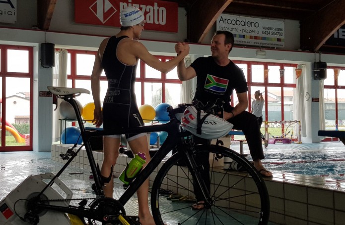 Lui è giovane, forte, molto attento e presente all’ascolto, deciso e convinto che oltre allo studio universitario nella sua vita c’è il triathlon, io decisamente meno giovane ma con qualche esperienza alle spalle …diciamo che qualche confronto , qualche riferimento , qualche conoscenza di come gira “ il mondo fuori “ ce l’ho …insieme cercheremo di ottimizzare le nostre risorse.