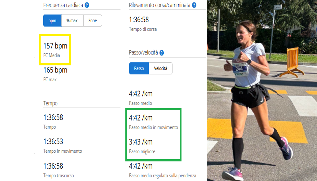 Il nostro obiettivo era inizialmente  1h40’ ma con il passare dei mesi abbiamo alzato leggermente l’asticella puntando al “ sub 100’ “ indicando 1h38’ il nostro PB ma attenzione, sempre nel rispetto del carico interno regolato principalmente dalle frequenza cardiaca.